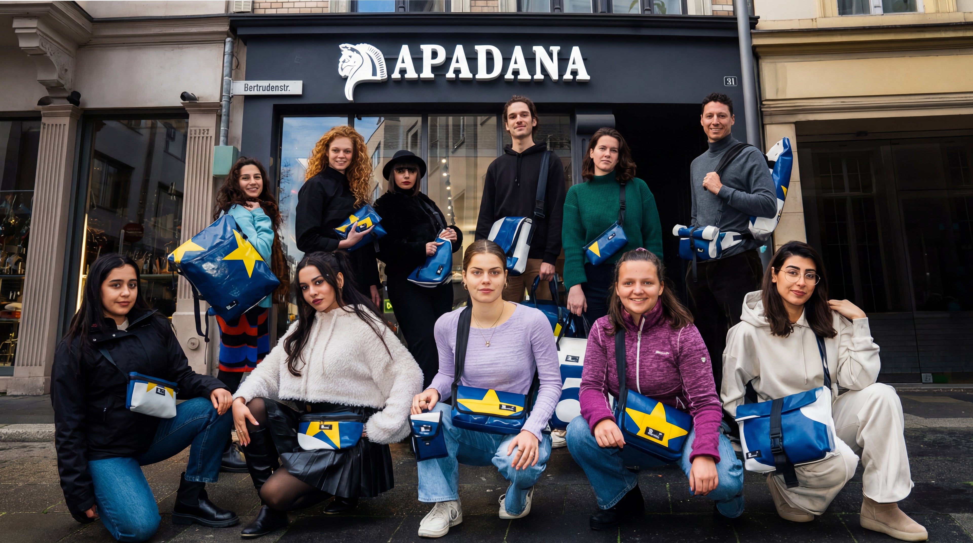 Mit über 33 Jahren Erfahrung steht Apadana für nachhaltige, handgefertigte Taschen, Accessoires und Textilien aus recycelten Materialien.