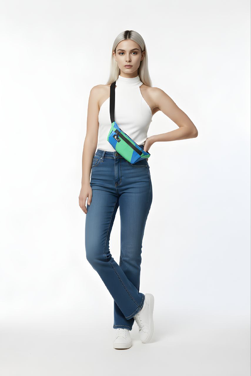 Der verstellbare Gurt ermöglicht verschiedene Tragevarianten: klassisch als Bauchtasche um die Hüfte oder modern als Crossbody Bag über der Schulter.
